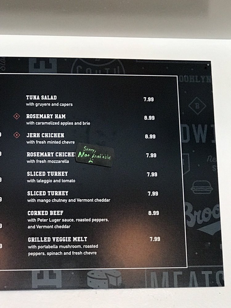 The menu boasts an array of flavors, featuring classic meats paired with unique cheeses and house-made spreads like fig preserves. Notable mentions include the house mac and cheese, which patrons rave about, and a variety of creative sandwiches, each bursting with personality. Brooklyn South is more than just sandwiches; it's an experience marked by friendly service and a welcoming atmosphere.